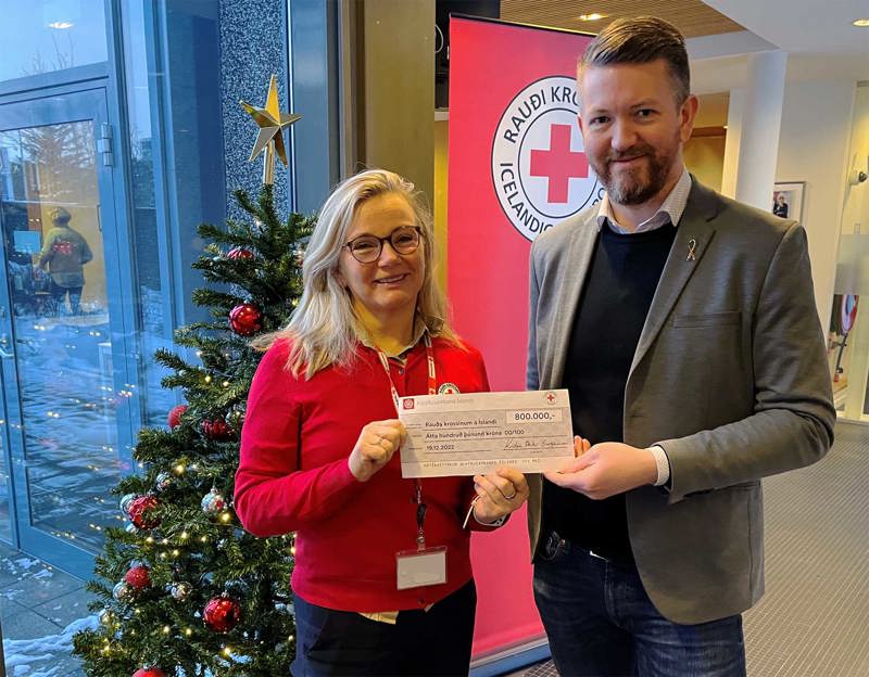 Kristján Þórður Snæbjarnarson, forseti ASÍ, afhenti Rauða krossinum á Íslandi styrk upp á 800 þúsund krónur fyrr í dag.