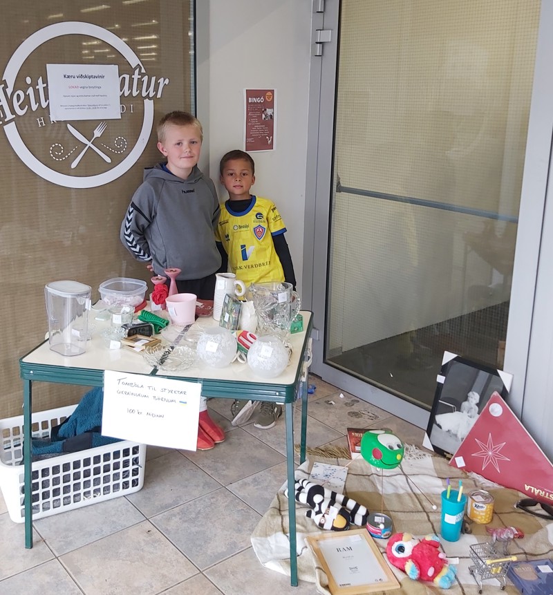 Þessir ungu drengir héldu tombólu við Nettó á Akureyri til styrktar Úkraínu og afhentu Rauða krossinum við Eyjafjörð afraksturinn 23.339 krónur.