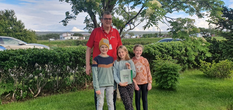 Krakkarnir heita, frá vinstri; Óðinn Ísaksson, hann er 9 að verða 10 ára og frá Stykkishólmi, Sonia Fjóla Mileris, hún er 9 að verða 10 ára og frá Reykjavík og Jenný Dagbjört Stefánsdóttir, en hún 9 ára og frá Reykjavík. Á myndinni eru þau með Sigurði Ólafssyni, formanni Rauða kross deildar Dala- og Reykhólahrepps.