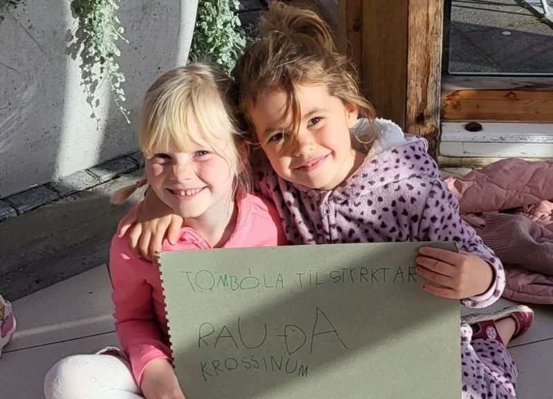 Vinkonurnar Una og Stella héldu nýlega tombólu til að styrkja neyðarsöfnun Rauða krossins.