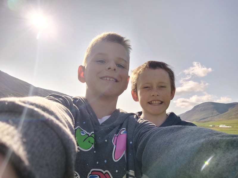 Gísli Örn Ólafsson og Einar Hjalti Steingrímsson bökuðu pönnukökur og seldu þær á ættarmóti til að styrkja Rauða krossinn.