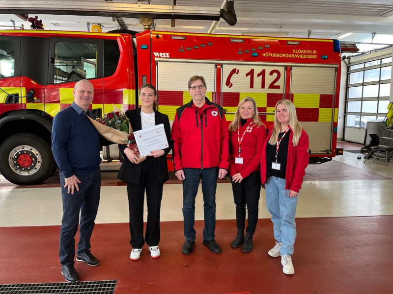 Í ár bárust margra góðar tilnefningar en nefndin sammæltist um að skyndihjálparmaður ársins 2021 væri vel að heiðrinum kominn. Skyndihjálparmaður ársins 2021 er Elsa Albertsdóttir, 22 ára gömul kona úr Reykjanesbæ sem bjargaði lífi föður síns, Alberts Eðvaldssonar, 57 ára, sem fór skyndilega í hjartastopp þar sem fjölskyldan var samankomin á heimili foreldra Alberts að horfa á fótboltaleik. Elsa hafði sótt skyndihjálparnámskeið Rauða krossins þrjú ár í röð og var fljót að átta sig á því hvað væri að gerast. Hún hafði í huga fjögur grunnatriði skyndihjálpar og stjórnaði aðgerðum fumlaust. Hún setti fjölskyldumeðlimi sína í hlutverk, bað þá að blása í föður hennar á milli þess sem hún beitti hjartahnoði og aðra að hringja í 112 sem varð til þess að sérhæfð aðstoð barst á staðinn fljótlega. Endurlífgunin bar árangur og Albert dvaldi 3 nætur á sjúkrahúsi í kjölfarið en er við góða heilsu í dag. Við getum sennilegast öll tengt við söguna hennar Elsu, sem sat í rólegheitum í fjölskyldusamveru þegar óvænt uppákoma varð til þess að líf föður hennar var í hennar höndum. Sagan hennar sýnir okkur einnig að skyndihjálparnámskeiðin kenna okkur mikilvæg handtök og skipulag þegar álag getur verið með mesta móti og líf liggur við. Með snarræði, og vel þjálfuðum vinnubrögðum, sem Elsa lærði á skyndihjálparnámskeiðum síðustu ára, bjargaði hún lífi föður síns og njóta þau bæði góðs af í dag.