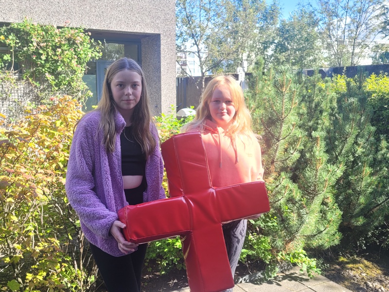 Vinkonurnar Eyvör Ása og Elma Karen söfnuðu flöskum í Grafarvogi og Mosfellsbæ og afhentu Rauða krossinum afraksturinn, 22.820 krónur.