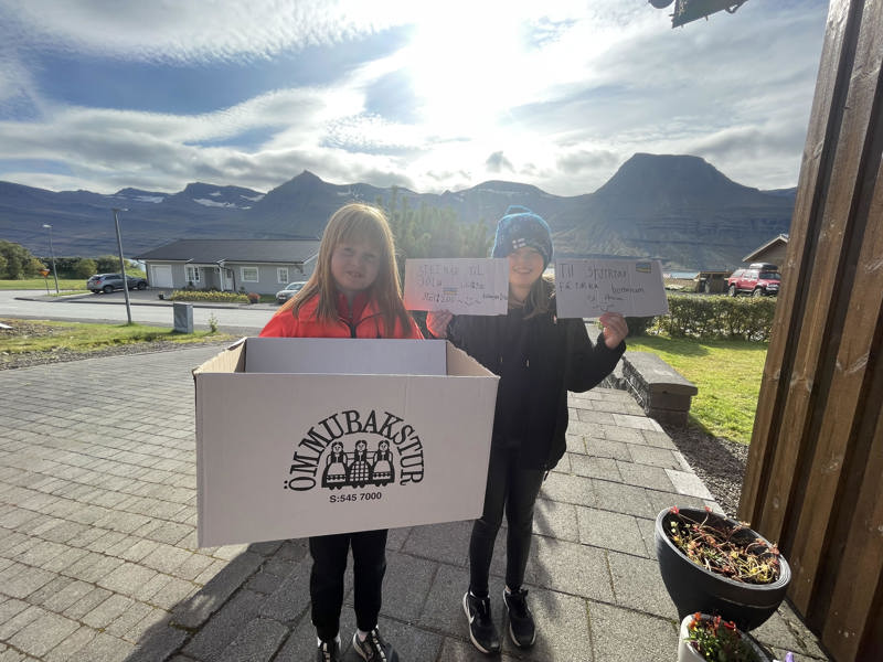 Þessar vinkonur, Iðunn Elísa og Sóley Nikíta, söfnuðu fyrir Úkraínu og fátæk börn með steinasölu á Reyðarfirði um helgina. Þær söfnuðu samtals 13.348 kr. sem þær lögðu inn á Rauða krossinn á mánudag.