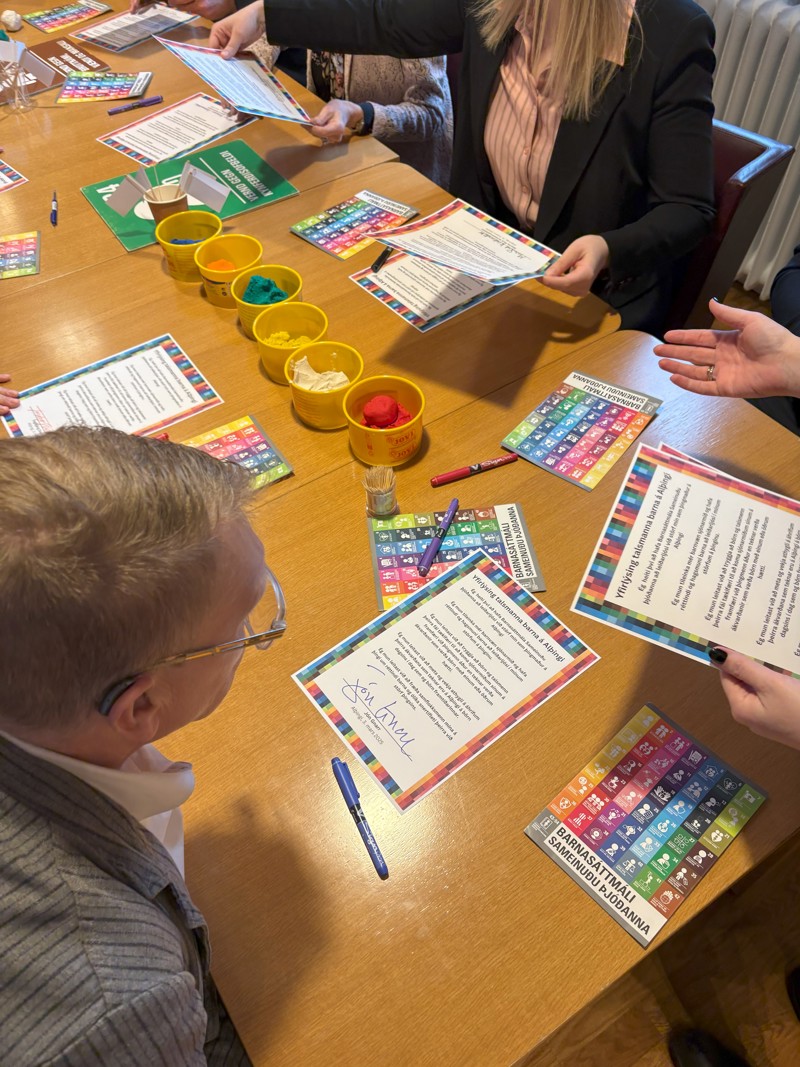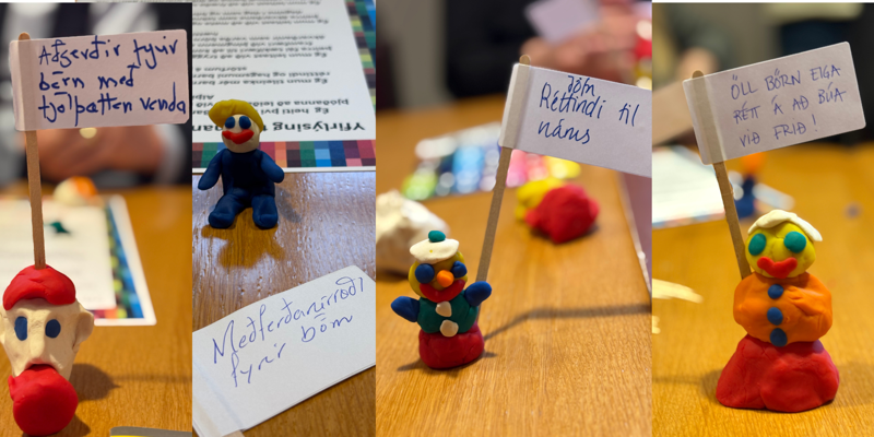 Eftir að þingmennirnir höfðu lokið við að leira fígúrur sem tala fyrir málefnum barna, völdu þau sér eina grein úr Barnasáttmála Sameinuðu þjóðanna sem hafði verið raðað upp á spjöld í fundarherberginu og stilltu sér upp fyrir myndatöku.