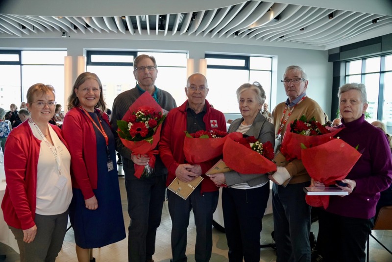 Því næst voru sjálfboðaliðarnir Genka Krasteva G. Yordanova, Guðný Björnsdóttir, Gunnar Frímannsson, Sesselja Þórðardóttir, Sveinn Kristinsson og Sveinn Þorsteinsson heiðruð fyrir öflugt sjálfboðastarf sitt fyrir félagið í áraraðir.