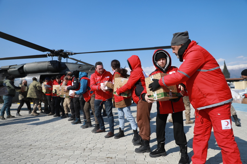 Starfsfólk og sjálfboðaliðar landsfélaga Rauða hálfmánans voru mættir með búnað og birgðir til að aðstoða þolendur skjálftanna á fyrstu klukkustundunum eftir jarðskjálftann og landsfélög Rauða krossins og Rauða hálfmánans um víða veröld hófu neyðarsafnanir fyrir þolendur samdægurs og hjálp hefur verið að berast til bæði Tyrklands og Sýrlands allt frá upphafi hamfaranna.