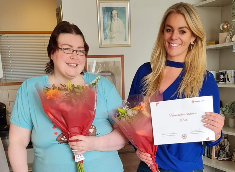 Í tilefni af 10 ára afmælinu kíktu verkefnastjórar Vinaverkefna Rauða krossins í heimsókn til að færa þeim fallegan blómvönd og heyra reynslu þeirra af verkefninu.
