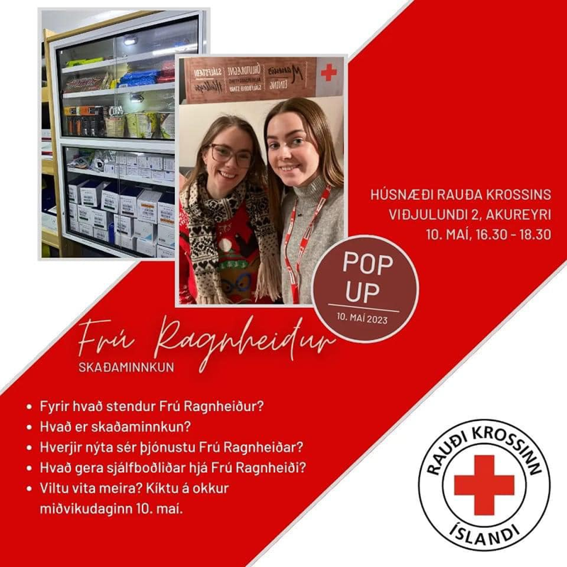 Rauði krossinn við Eyjafjörð heldur kynningu á skaðaminnkunarverkefninu Frú Ragnheiði næsta miðvikudag kl. 16:30 í húsnæði sínu við Viðjulund 2 á Akureyri. Þar verður farið yfir hvað felst í þjónustu Frú Ragnheiðar og notkun á Naloxone nefúða verður kynnt, en nefúðinn getur veitt lífsbjargandi neyðaraðstoð við ofskömmtun.